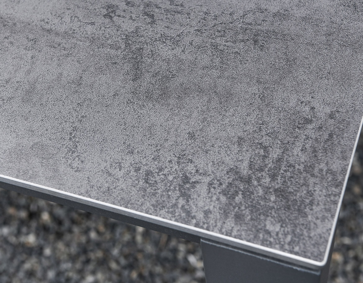 Handcrafted Aluminum and All-Weather TextileneThe Flex table is extendable in "automatic" style and seats up to ten people. The tabletop is printed glass, availbe in cement, ceramic and marble finishing. Flex delivers the ultimate versatility, comfort and durablity to your outdoor dining.